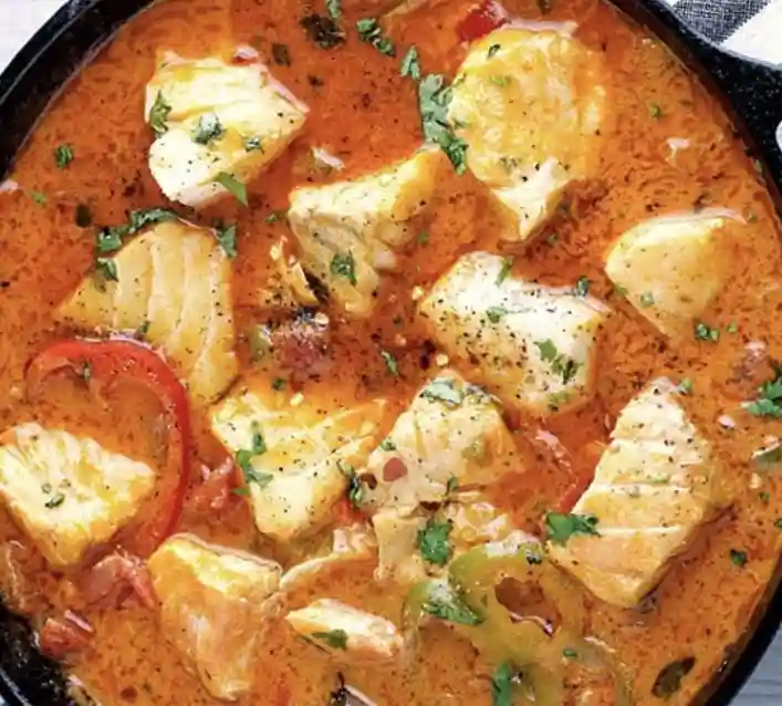 Sauce au lait de Coco et Gingembre frais dés de poivrons riz blanc
